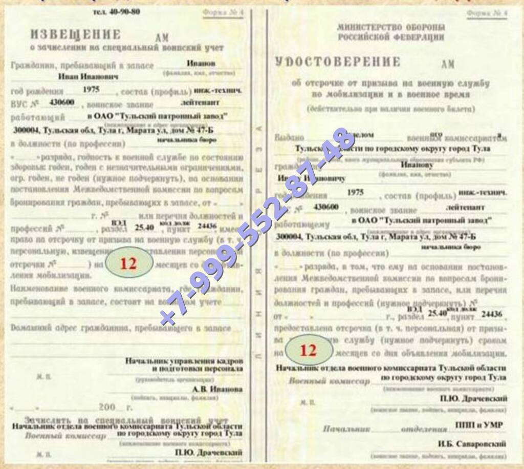 Наша компания предлагает купить в Белебее удостоверение об отсрочке на военную службу на максимально выгодных условиях для клиента. С документами не возникнет проблем в будущем.